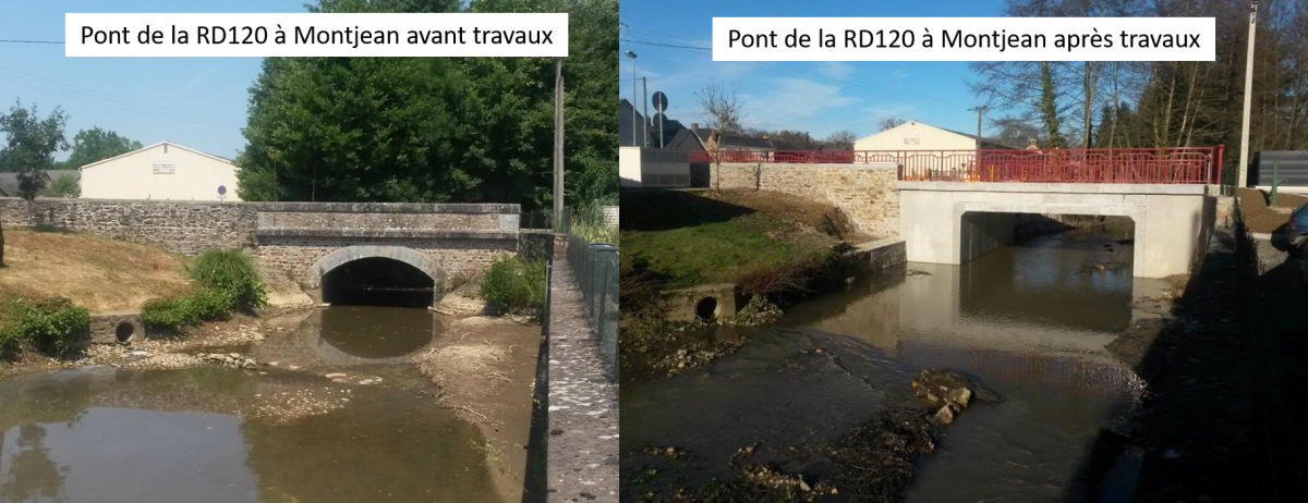 Les travaux d’agrandissement du pont de la RD 120, situé dans le bourg de Montjean, ont débuté le 11 septembre et se sont achevés le 7 décembre 2017.