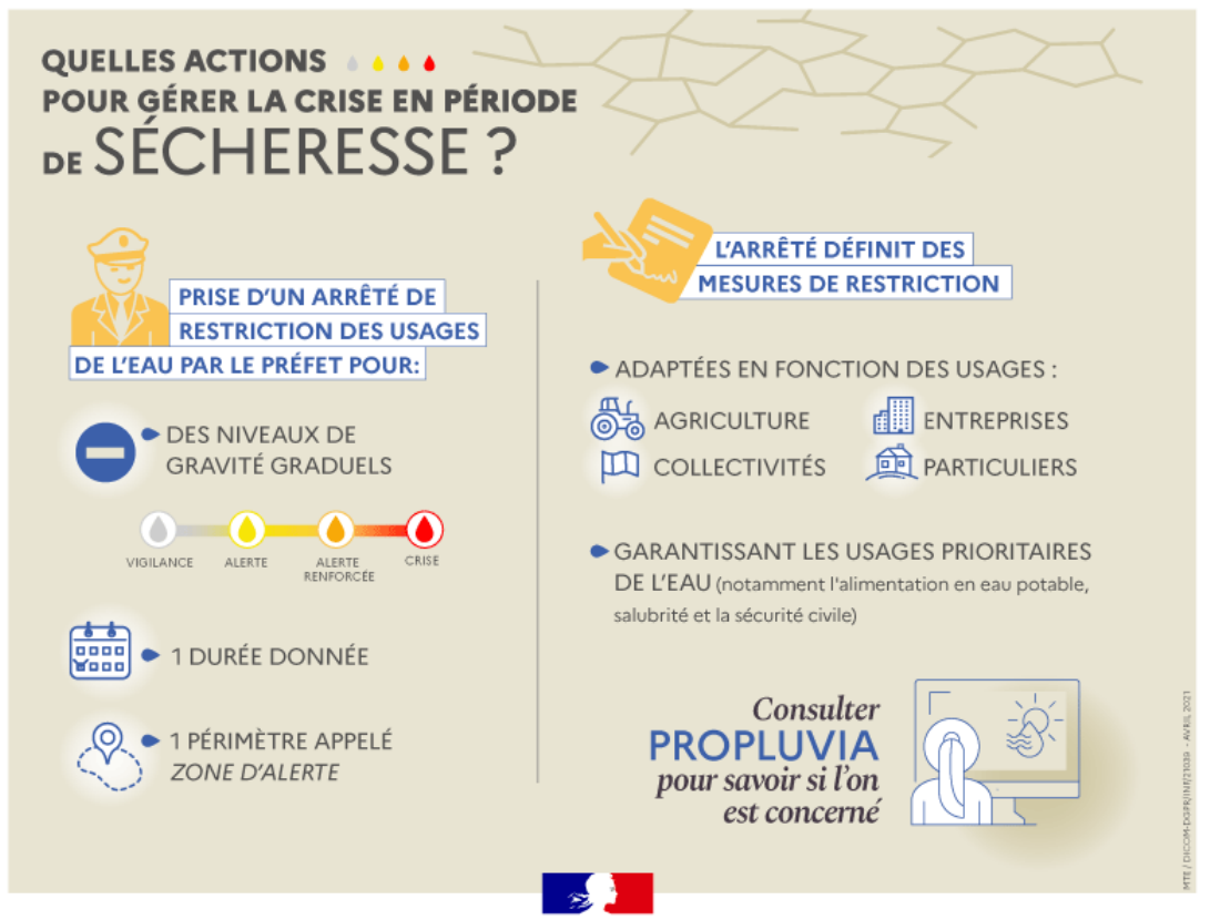 Pour adapter vos consommations à la situation, le site gouvernemental dédié aux arrêtés sécheresse Propluvia vous informe.