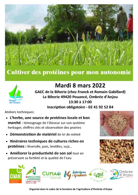 Le syndicat du bassin de l’Oudon organise une demi-journée d’ateliers techniques sur le thème de l’autonomie protéique le 8 mars prochain. Cette proposition s’inscrit dans le cadre de la 8e semaine de l’agriculture de la commune d’Ombrée d’Anjou.