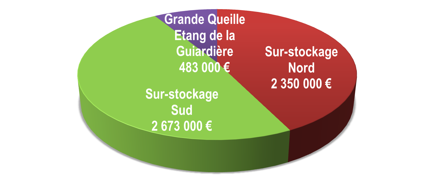 Le programme de protection prévoyait 19 retenues temporaires et 8 plans d’eau pour un  volume d’eau stocké de 4 millions de mètres cubes. Le dispositif actuel compte 12 retenues temporaires et 3 plans d’eau pour un volume d’eau stocké de 2.8 Mm3 mais il permet d’atteindre 85% des objectifs fixés ci-dessous.