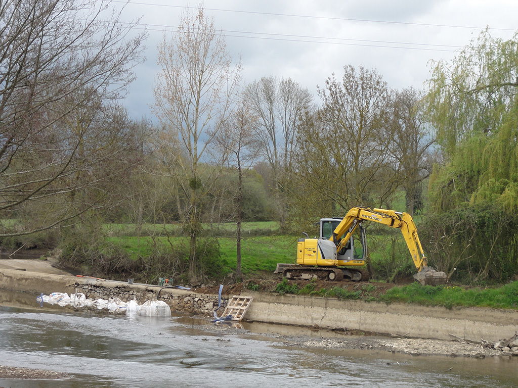Réfection du déversoir du moulin de Châtelais Le S.B.O.S. est propriétaire du déversoir du moulin de Châtelais. Une fuite importante a été constatée sur l’ouvrage. Le syndicat a engagé des travaux de réfection de la maçonnerie en avril 2014.