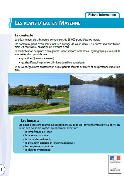 Télécharger la fiche d’information sur les plans d’eau de la DDT53 :