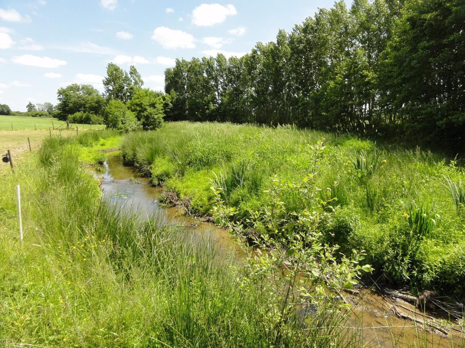 Amont du barrage de la Bellangerie après effacement – juin 2015 – crédit photo SBOS