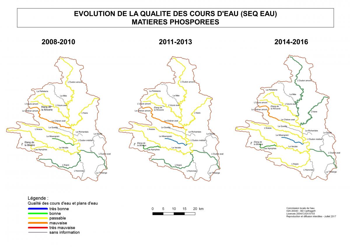 Les concentrations en phosphore total ont fortement diminué par rapport à la période des années 90.