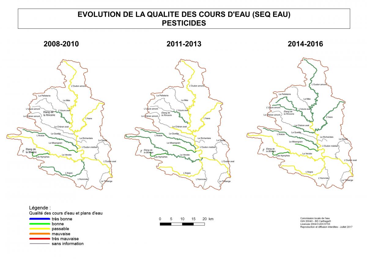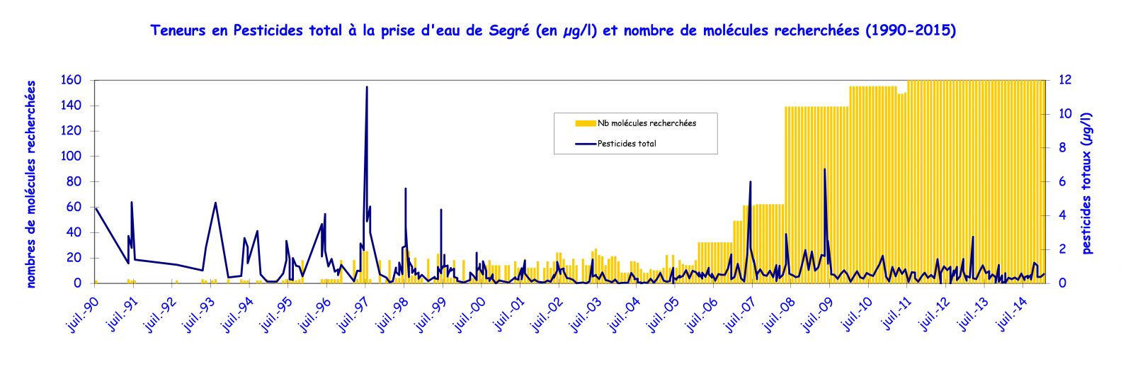 Au sujet des produits phytosanitaires, bien que l’on analyse de plus en plus de molécules, il faut remarquer que l’on retrouve de moins en moins de quantité lorsque l’on compare les années 90 aux années 2000.